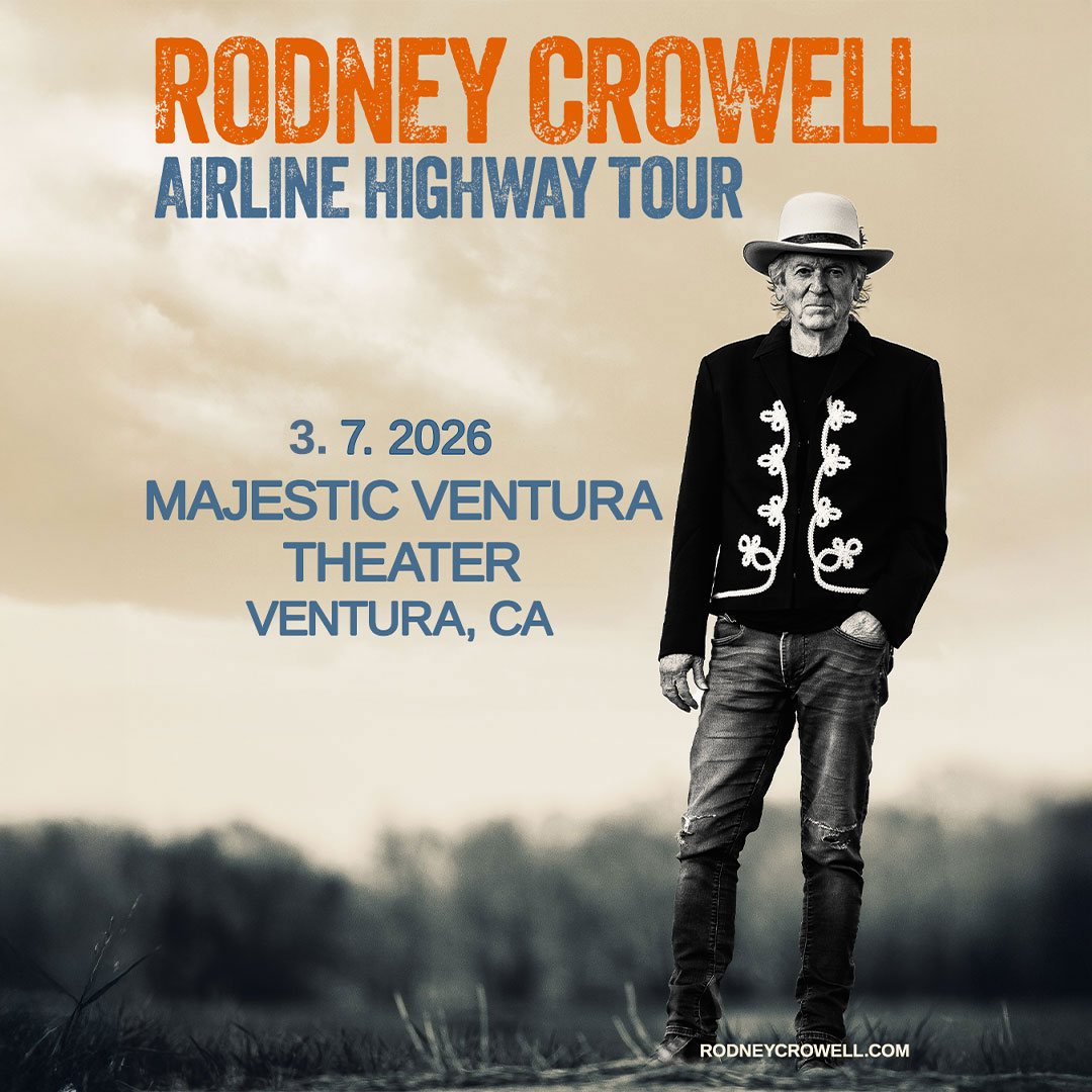 Rodney Crowell is bringing the Airline Highway Tour to Ventura – March 7th. Tickets are available now!
