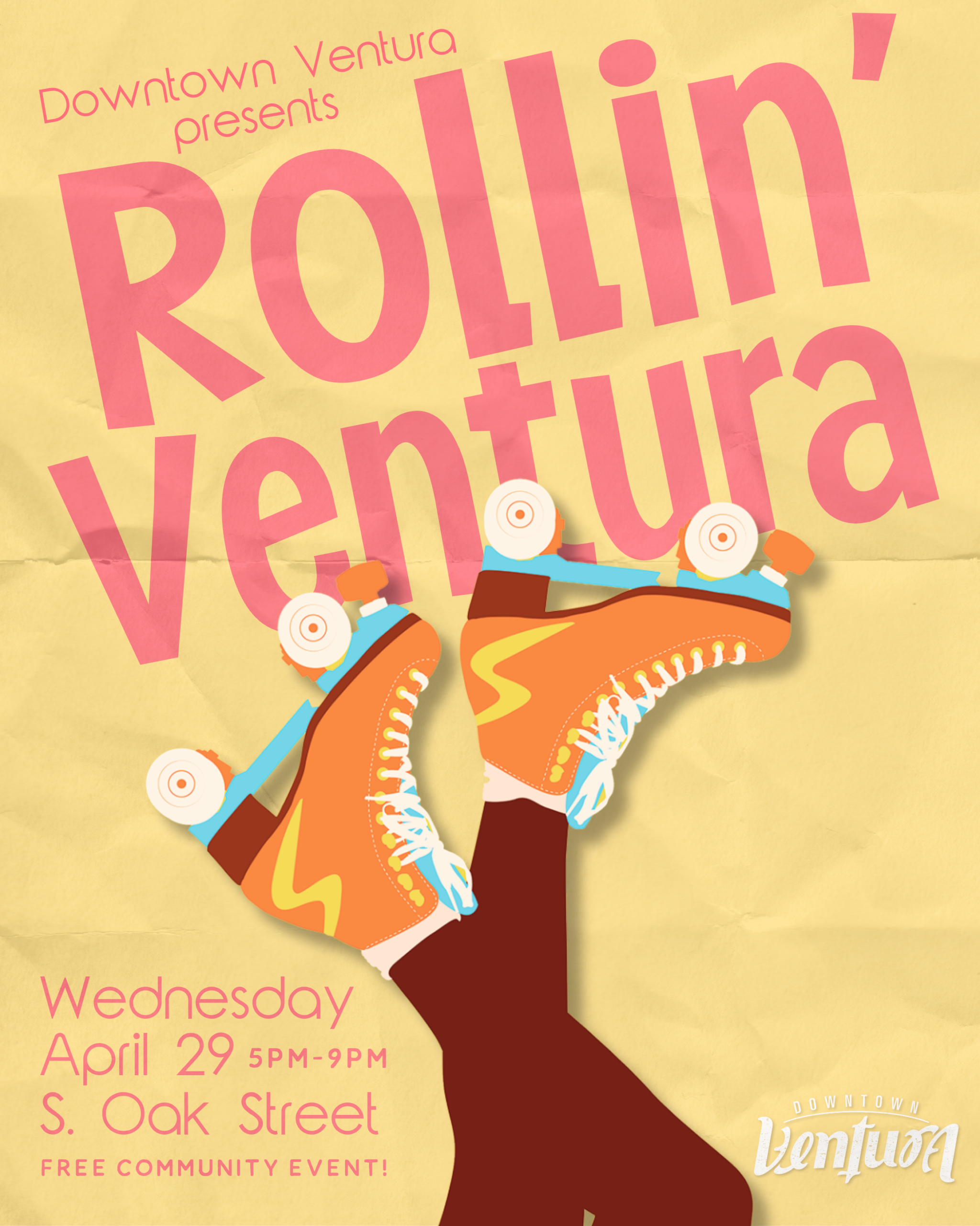 Join us for Rollin’ Ventura, a FREE, community event Wednesday, April 29 from 5pm-9pm on S. Oak Street in Downtown Ventura!
