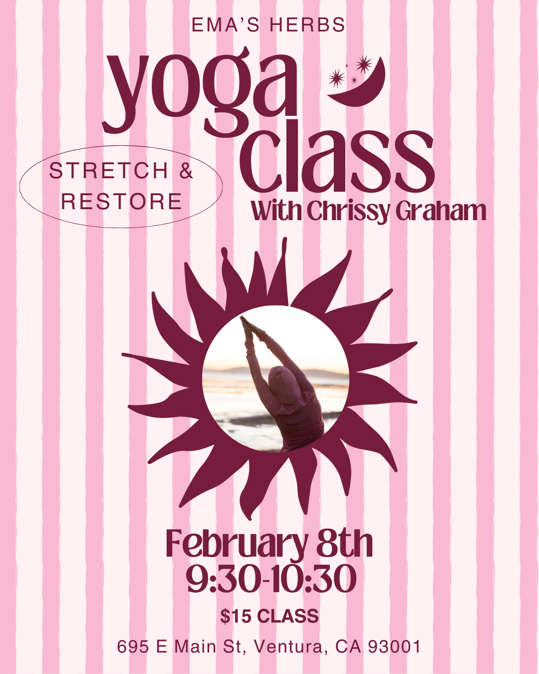 Join us for monthly yoga at Ema’s Herbs! This class will consist of a blend of gentle to moderate yoga poses suitable for all levels. We will focus on stretching and poses designed to help develop greater physical mobility. Each class will finish with relaxation through breath and a restful pose to rejuvenate the mind and body. Please bring a yoga mat and a strap if you have one.