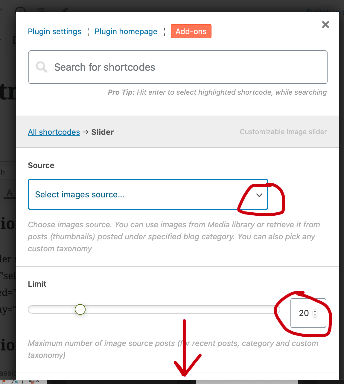 slider options